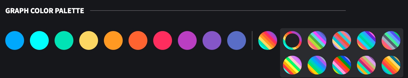 Dashboard widgets for multi-series charts now include the ability to choose from a color palette. If multiple charts are using the same palette, the series colors within the charts will be stating, meaning that series values (e.g. IP addresses) will remain the same color throughout multiple widgets. Refer to the below Color Palette for reference.