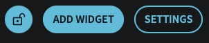 When a dashboard is opened in Edit mode, the following elements appear on the page: the unlocked button, the ADD WIDGET button, and the SETTINGS button. Clicking the unlocked button changes its state to locked , editable options are removed, and the dashboard is now in view only mode.