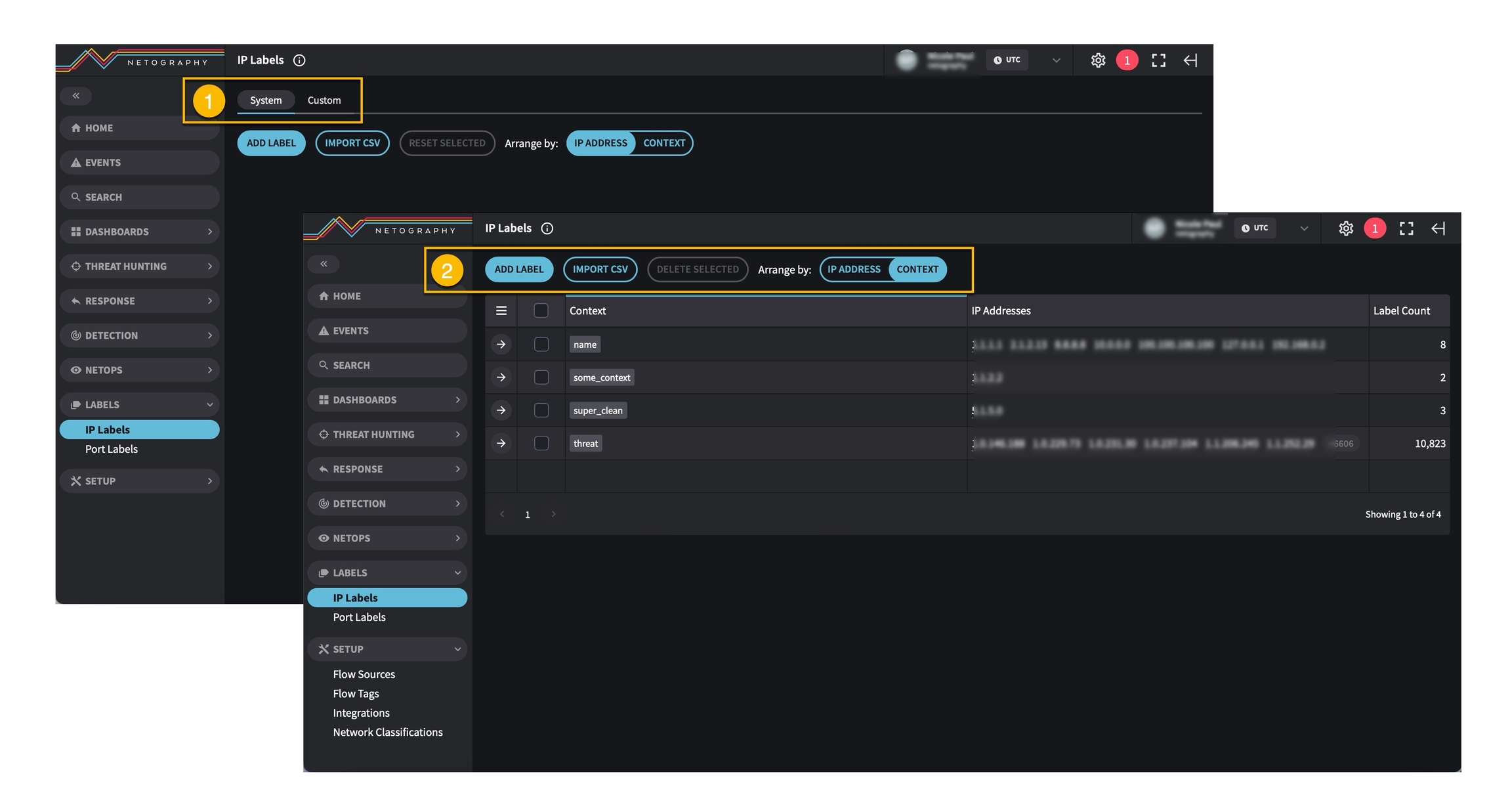 The IP Labels page has changed. Previous to this version, the IP Labels page displayed System and Custom tabs In this latest version, the System and Custom tabs are removed and only custom labels display in the table. Additionally, the Expand Properties Tray controller has been removed from the custom page.